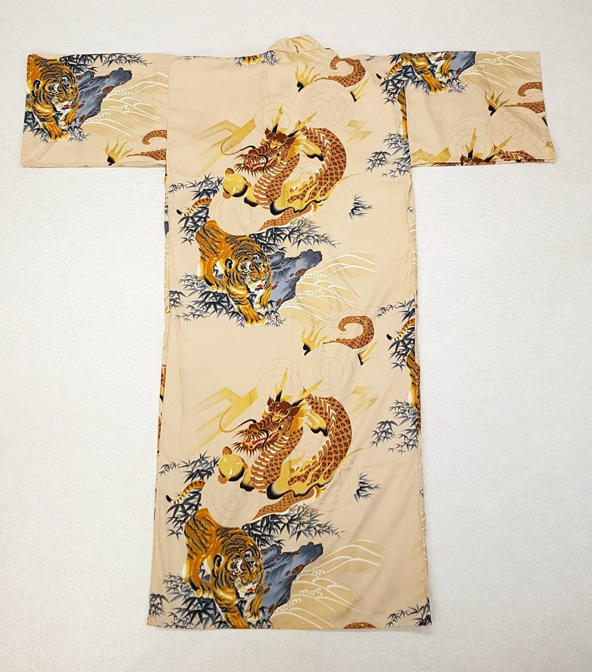 Japanese Yukata 100 Cotton Beige Gold Dragon And Tiger Etsy Uk